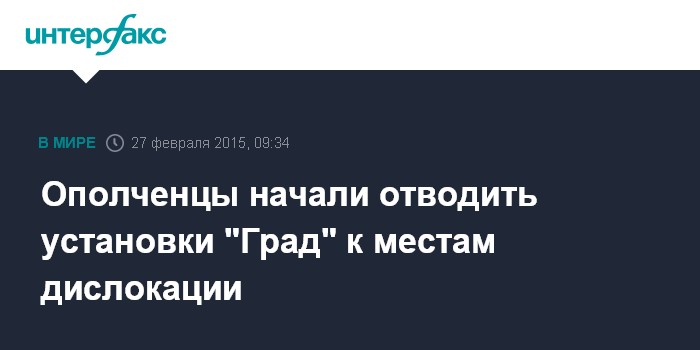 Москва. 27 февраля. INTERFAX.RU - Ополченцы самопровозглашенной Донецкой народной республики в пятницу приступили к отводу систем залпового огня "Град" от линии соприкосновения.