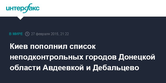Киев пополнил список неподконтрольных городов Донецкой области Авдеевкой и Дебальцево
