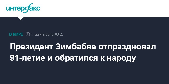 Москва. 1 марта. INTERFAX.RU - Президент Зимбабве Роберт Мугабе в субботу отпраздновал 91-й день рождения с шикарным банкетом на курорте с полем для гольфа у водопада Виктория, сообщила газета The Telegraph.
