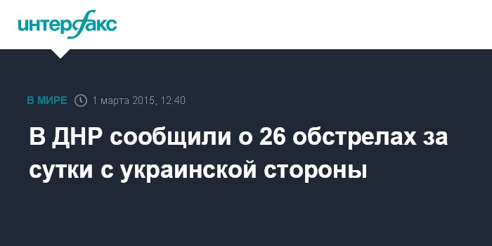 Москва. 1 марта. INTERFAX.RU - В самопровозглашенной Донецкой народной республике за сутки зафиксировано 26 обстрелов со стороны украинских военных, сообщили в министерстве обороны ДНР.