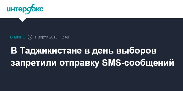 Москва. 1 марта. INTERFAX.RU - Таджикские сотовые операторы в воскресенье, в день проведения голосования по выборам в Маджлиси Оли (парламент), отключили службу обмена короткими сообщениями (SMS) по указанию властей, сообщили "Интерфаксу" источники в сотовых компаниях.
