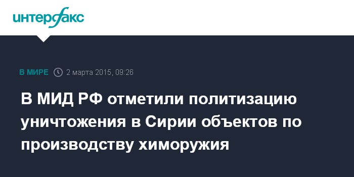 В МИД РФ отметили политизацию уничтожения в Сирии объектов по производству химоружия