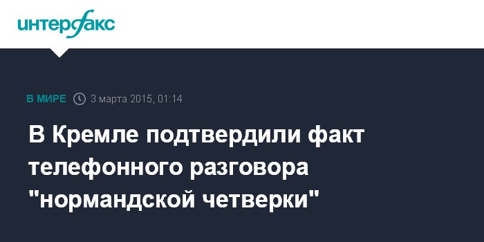 Москва. 3 марта. INTERFAX.RU - Состоялся телефонный разговор президента РФ Владимира Путина с федеральным канцлером Федеративной Республики Германия Ангелой Меркель, президентом Франции Франсуа Олландом и президентом Украины Петром Порошенко, сообщила пресс-служба Кремля.