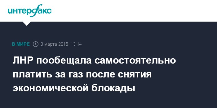 Москва. 3 марта. INTERFAX.RU - Самопровозглашенная Луганская народная республика готова в полном объеме напрямую оплачивать поставки газа в случае снятия Киевом экономической блокады, заявил премьер ЛНР Геннадий Цыпкалов.