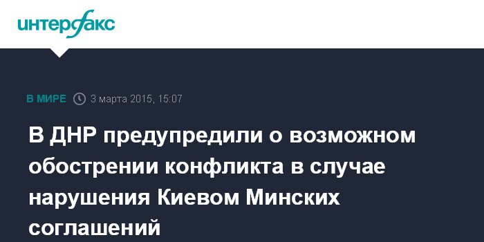 В ДНР предупредили о возможном обострении конфликта в случае нарушения Киевом Минских соглашений