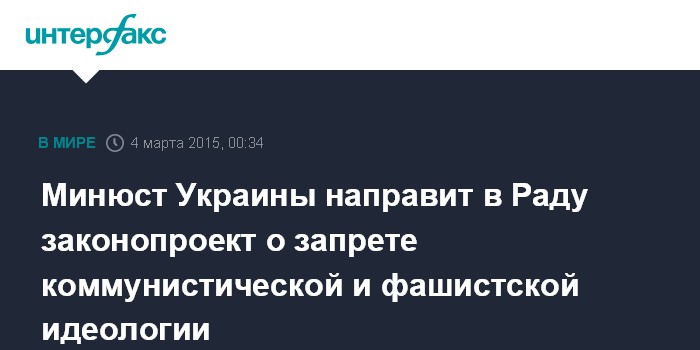 Москва. 4 марта. INTERFAX.RU - Законопроект о запрете коммунистической и фашистской идеологии, разработанный представителями министерства юстиции Украины, учеными и депутатами, будет направлен в ближайшие дни в Верховную раду Украины.