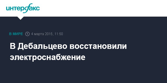 Москва. 4 марта. INTERFAX.RU - В руководстве самопровозглашенной Донецкой народной республике заявляют, что в Дебальцево возобновлена подача электроэнергии, а также выплата пенсий.