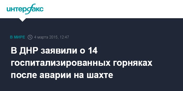 В ДНР заявили о 14 госпитализированных горняках после аварии на шахте