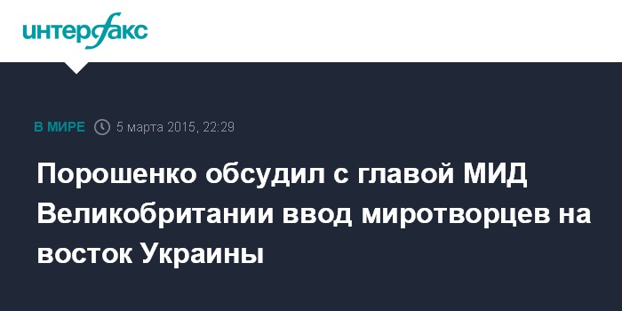Москва. 5 марта. INTERFAX.RU - Президент Украины Петр Порошенко вновь подчеркивает необходимость введения в страну миротворцев для деэскалации ситуации.