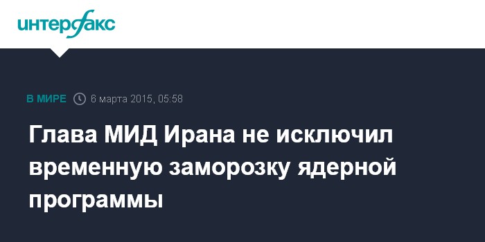 Москва. 6 марта. INTERFAX.RU - Иран может согласиться на замораживание своей ядерной программы на некоторое время, заявил министр иностранных дел Ирана Мохаммад Джавад Зариф.