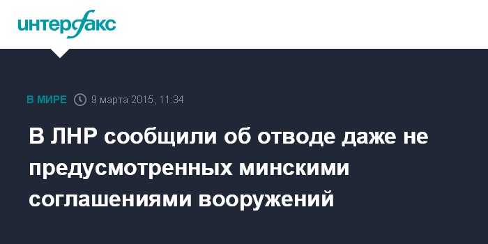 Москва. 9 марта. INTERFAX.RU - Власти самопровозглашенной Луганской народной республики в одностороннем порядке совершили отвод части тяжелого вооружения, не предусмотренного мирными соглашениями, заявил полномочный представитель ЛНР на минских переговорах Владислав Дейнего.