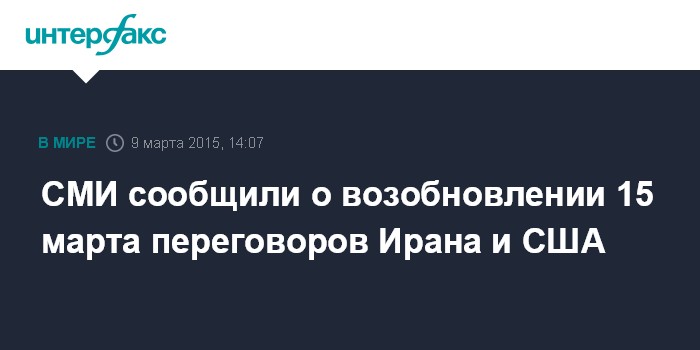 Москва. 9 марта. INTERFAX.RU - Переговоры между Ираном и Соединенными Штатами по иранской ядерной программе планируется возобновить 15 марта в швейцарской Лозанне, сообщило иранское информационное агентство ИРНА в понедельник.