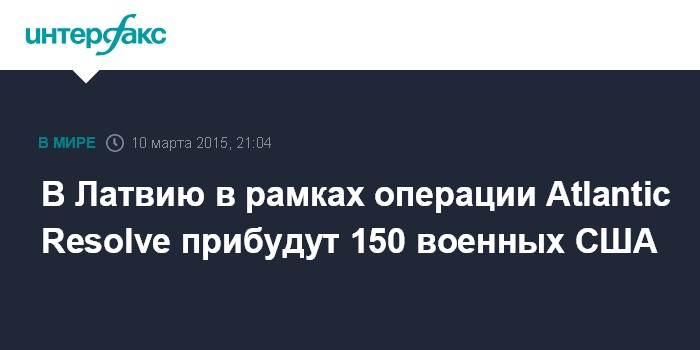 Москва. 10 марта. INTERFAX.RU - В рамках операции Atlantic Resolve в Латвию в марте из Германии прибудет одна из рот третьей пехотной дивизии, в составе которой примерно 150 военнослужащих, сообщили агентству BNS в посольстве США в Риге.