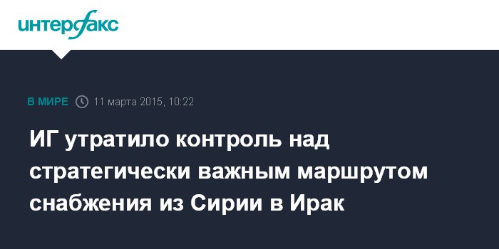 Москва. 11 марта. INTERFAX.RU - Бойцы экстремистской группировки "Исламское государство" потеряли контроль над несколькими участками стратегически важной дороги, которая ведет с северо-востока Сирии в Ирак, передают в среду западные СМИ.