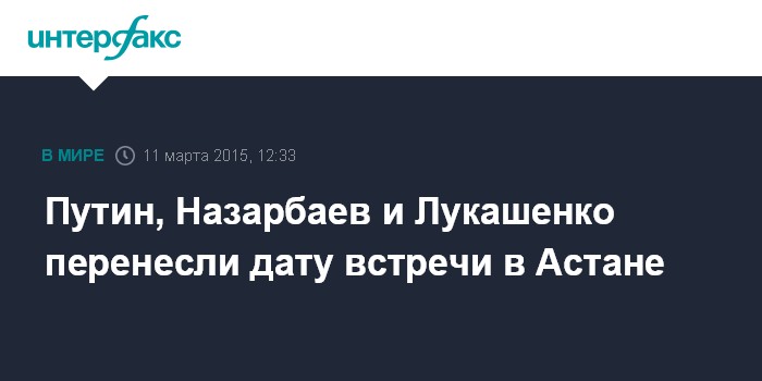 Пресс-служба лидера Казахстана сообщала, что проведение трехсторонней встречи Лукашенко, Путина и Назарбаева планируется в Астане 13 марта. Ожидалось, что главы государств рассмотрят вопросы углубления взаимной торговли и экономического взаимодействия трех стран. "Кроме того, президенты обсудят развитие тенденций в мировой экономике, а также ситуацию в Украине", - отмечалось в сообщении пресс-службы президента Казахстана.
