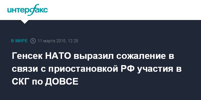Москва. 11 марта. INTERFAX.RU - Генсек НАТО Йенс Столтенберг заявил в среду, что разочарован решением РФ приостановить участие в Совместной консультативной группе (СКГ) по ДОВСЕ.