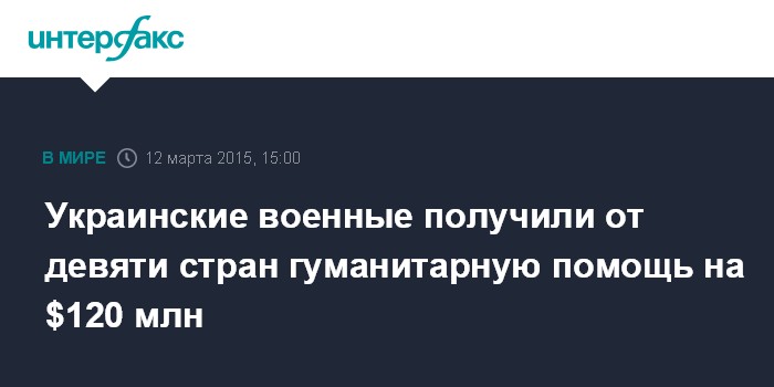 Москва. 12 марта. INTERFAX.RU - Украинские Вооруженные силы по состоянию на сегодняшний день получили гуманитарную помощь от девяти стран на сумму около $120 млн, сообщает пресс-служба Кабинета министров.