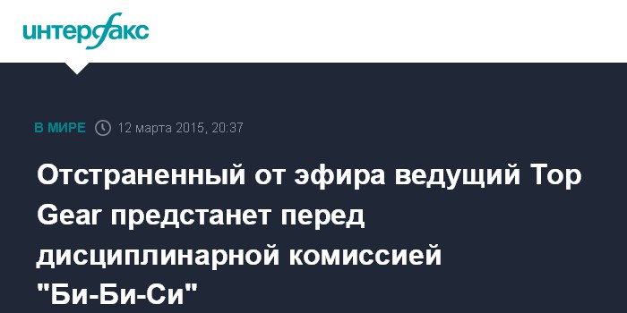 Москва. 12 марта. INTERFAX.RU - Дисциплинарная комиссия "Би-Би-Си" определит судьбу ведущего популярной передачи о машинах Top Gear Джереми Кларксона, временно отстраненного от эфира, сообщает в четверг телеканал Sky news.