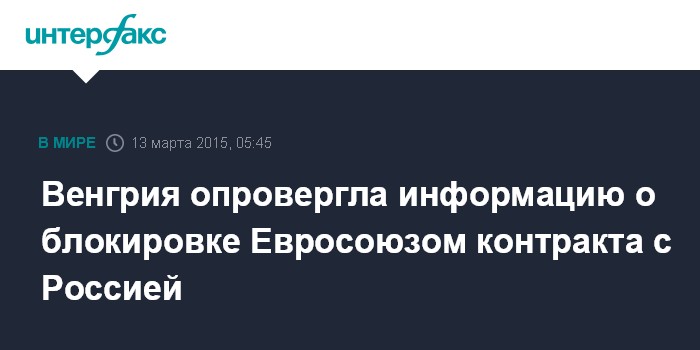 Как сообщает телеканал "Россия-24", он потребовал опубликовать опровержение появившейся ранее в СМИ информации о блокировке сделки. Как сообщила газета Financial Times со ссылкой на источники, ЕС лишил Будапешт атомного контракта с Россией, предусматривающего расширение АЭС. По данным издания, Евросоюз заблокировал контакт в ходе встречи 28 комиссаров от стран-членов ЕС, состоявшейся в Брюсселе на минувшей неделе.