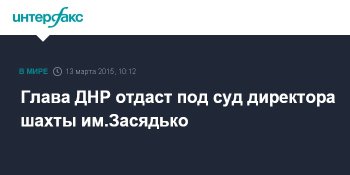 Москва. 13 марта. INTERFAX.RU - Директор шахты имени Александра Засядько, где 34 человека погибли от взрыва, пойдет под суд по законам самопровозглашенной Донецкой народной республики, заявил глава ДНР Александр Захарченко.