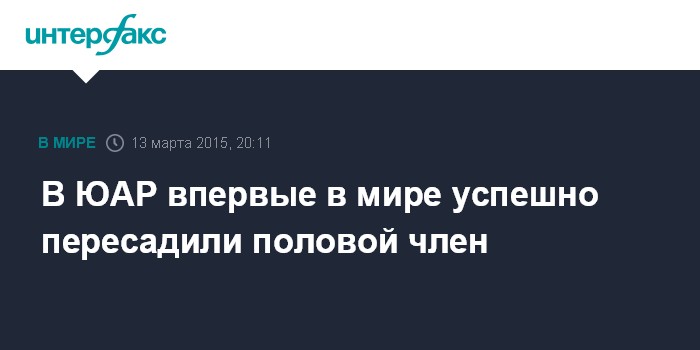 Москва. 13 марта. INTERFAX.RU - Группе хирургов в ЮАР удалось успешно провести операцию по трансплантации пениса, сообщает в пятницу американская газета Washington Post.