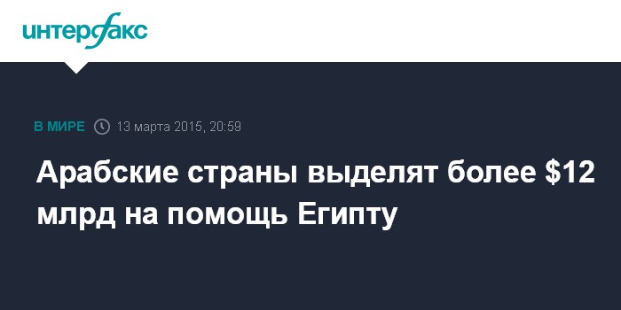 Москва. 13 марта. INTERFAX.RU - Кувейт, Саудовская Аравия и ОАЭ приняли решение направить $12,5 млрд Каиру в виде помощи и инвестиций для стабилизации экономики Египта, сообщает в пятницу сайт египетского издания "Аль-Ахрам".