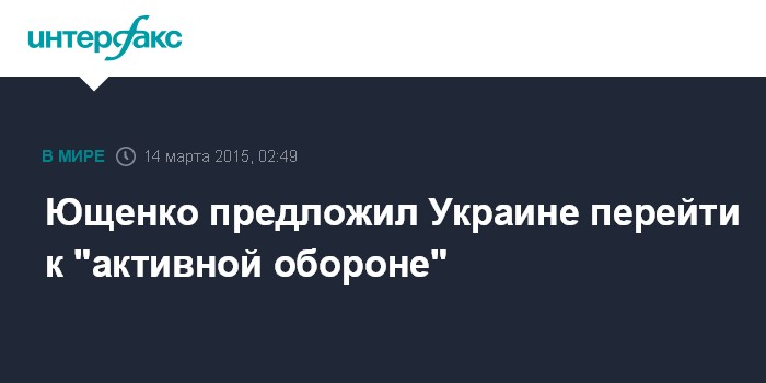 Москва. 14 марта. INTERFAX.RU - Украина должна перейти к "активной обороне", а не полагаться в первую очередь на дипломатию, считает бывший президент Украины Виктор Ющенко.