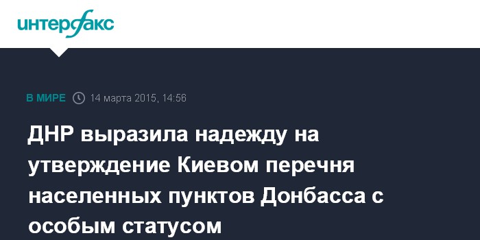 Москва. 14 марта. INTERFAX.RU - В руководстве ДНР надеются, что Верховная Рада Украины в течение предстоящей недели все-таки определится с утверждением списка населенных пунктов Донбасса, которые наделяются особым статусом.