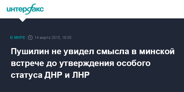 Москва. 14 марта. INTERFAX.RU - Полпред самопровозглашенной Донецкой народной республики на Минских переговорах Денис Пушилин заявил, что не видит смысла во встрече Контактной группы до утверждения Верховной радой особого статуса Донбасса.