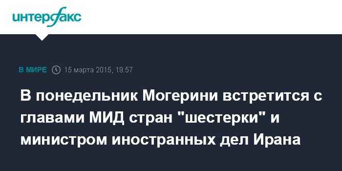 Москва. 15 марта. INTERFAX.RU - Глава дипломатии ЕС Федерика Могерини встретится в понедельник в Брюсселе с министрами иностранных дел Германии Франком Вальтером Штайнмайером, Франции Лораном Фабиусом, Великобритании Филипом Хаммондом и Ирана Мохаммадом Джавадом Зарифом, сообщила в воскресенье в Брюсселе Европейская внешнеполитическая служба.