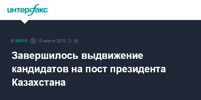 Москва. 15 марта. INTERFAX.RU - Центральная избирательная комиссия (ЦИК) Казахстана завершила прием заявлений от желающих побороться за пост президента Казахстана.
