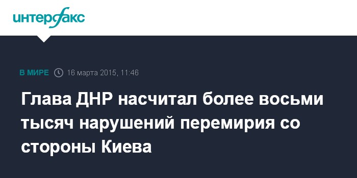 Глава ДНР насчитал более восьми тысяч нарушений перемирия со стороны Киева