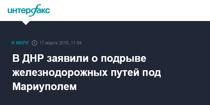 Москва. 17 марта. INTERFAX.RU - Власти самопровозглашенной Донецкой Народной Республики сообщили о подрыве утром во вторник железнодорожных путей около Мариуполя и возложили ответственность за это на украинских военных.