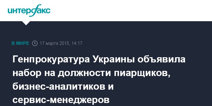 Москва. 17 марта. INTERFAX.RU - Генеральная прокуратура Украины в рамках реформирования органов прокуратуры объявляет об открытии вакансий на ряд должностей.