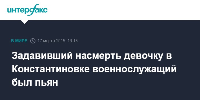 Москва. 17 марта. INTERFAX.RU - Управлявший бронированным тягачом военнослужащий, который 16 марта сбил насмерть восьмилетнюю девочку в Константиновке, по предварительной информации, был в нетрезвом состоянии Об этом сообщила во вторник пресс-служба Генштаба вооруженных сил Украины.