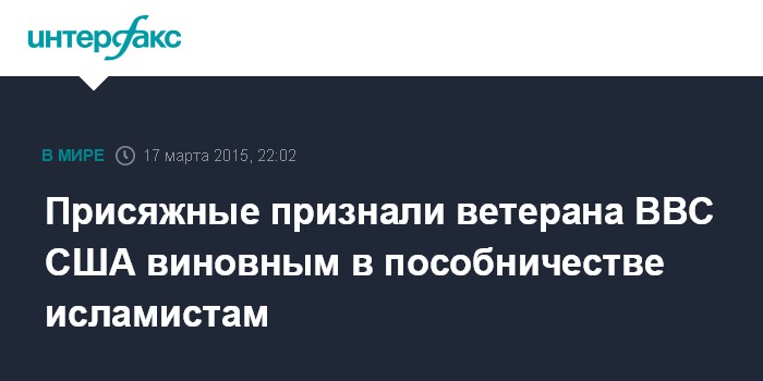 Москва. 17 марта. INTERFAX.RU - Присяжные нью-йоркского суда вынесли обвинительный приговор по делу о сотрудничестве бывшего сотрудника ВВС США с террористической группировкой "Исламское государство" (ИГ), сообщили во вторник в Минюсте США.