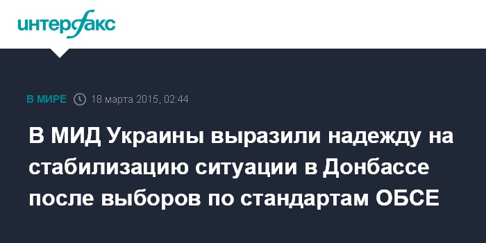 Москва. 18 марта. INTERFAX.RU - МИД Украины считает, что проведение свободных и справедливых демократических выборов в Донбассе с обязательным соблюдением стандартов ОБСЕ приведет к стабилизации ситуации на востоке страны.