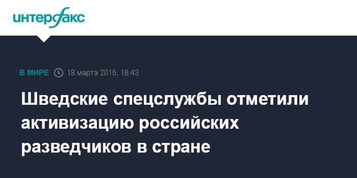 Москва. 18 марта. INTERFAX.RU - Сотрудники российской разведки крайне активно занимаются сбором информации на территории Швеции, заявили в шведской службе безопасности SAPO.