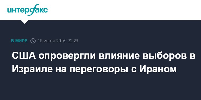Москва. 18 марта. INTERFAX.RU - Победа возглавляемой Биньямином Нетаньяху партии "Ликуд" на парламентских выборах в Израиле не окажет влияния на переговорный процесс между "шестеркой" и Тегераном по иранской ядерной программе, заявила в среду на брифинге представитель госдепа США Дженнифер Псаки.
