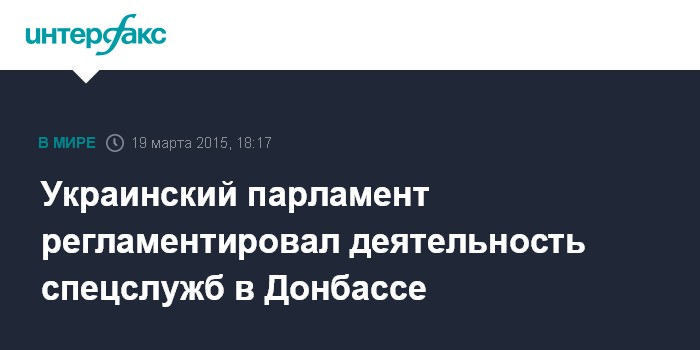 Москва. 19 марта. INTERFAX.RU - Верховная Рада законодательно закрепила право украинских разведывательных органов проникать в международные террористические организации, а также организации, которые ведут "подрывную деятельность" в отношении Украины.