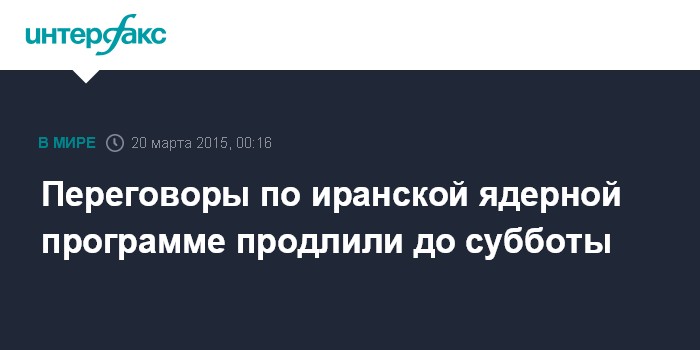 Москва. 20 марта. INTERFAX.RU - Переговоры по иранской ядерной программе продлены до субботы. Об этом "Интерфаксу" сообщил источник в иранской делегации. "Ожидаем, что на них прибудут главы МИД Германии , Франции и Великобритании", - сказал собеседник агентства.
