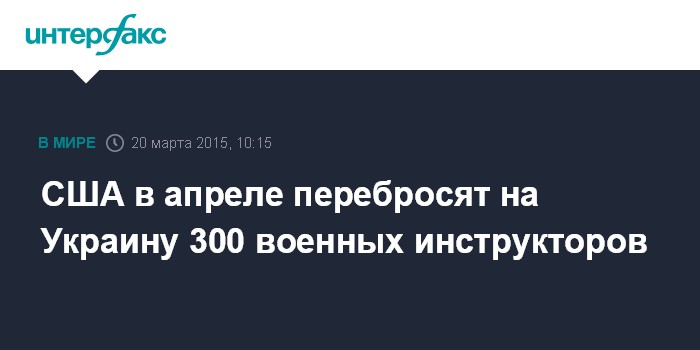 Москва. 20 марта. INTERFAX.RU - Американское военное командование в апреле намерено перебросить на Украину 300 военнослужащих для обучения бойцов украинской Национальной гвардии, сообщили в Пентагоне.