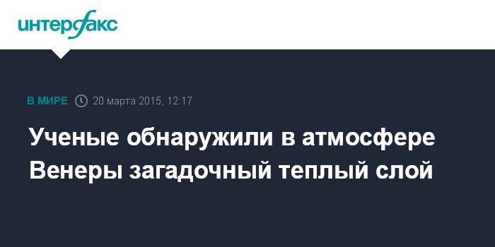 Москва. 20 марта. INTERFAX.RU - Группа российских, европейских и американских ученых на основе данных, собранных европейским зондом "Венера-Экспресс", создали температурную карту верхней атмосферы на ночной стороне Венеры и обнаружили загадочный теплый слой, сказано в сообщении в пятницу.