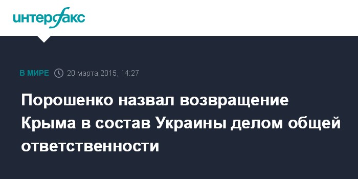 Москва. 20 марта. INTERFAX.RU - Президент Петр Порошенко настаивает, что Крым по-прежнему остается частью Украины.