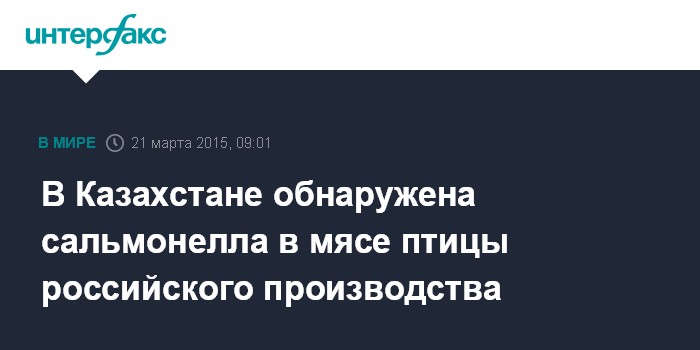 Москва. 21 марта. INTERFAX.RU - В Астане изъята из реализации тонна куриного мяса, в котором обнаружена сальмонелла, сообщил комитет по защите прав потребителей министерства национальной экономики Казахстана.