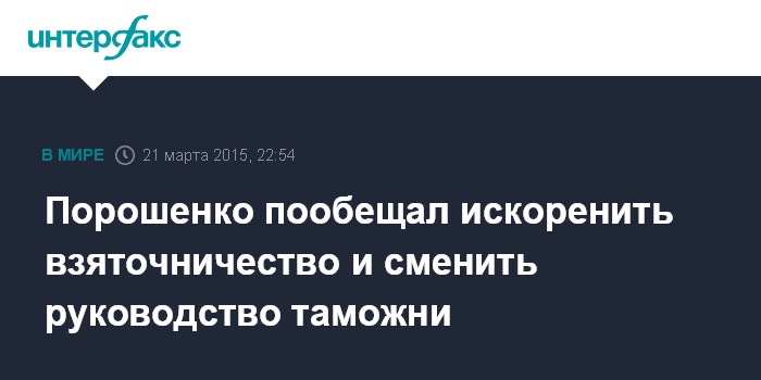 Москва. 21 марта. INTERFAX.RU - Президент Украины Петр Порошенко заявил о намерении сменить руководство украинской таможни в рамках борьбы с коррупцией.