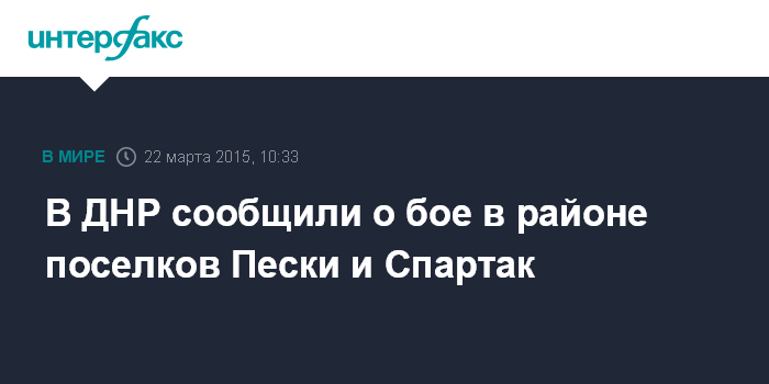 Москва. 22 марта. INTERFAX.RU - Ополченцы самопровозглашенной Донецкой народной республики сообщают о бое на северо-западных окраинах Донецка в районе поселков Пески и Спартак.