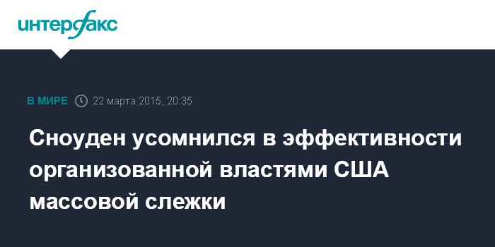 Москва. 22 марта. INTERFAX.RU - Массовая электронная слежка за людьми, устроенная спецслужбами США, не доказала своей эффективности, заявил бывший сотрудник американского Агентства национальной безопасности (АНБ) Эдвард Сноуден.