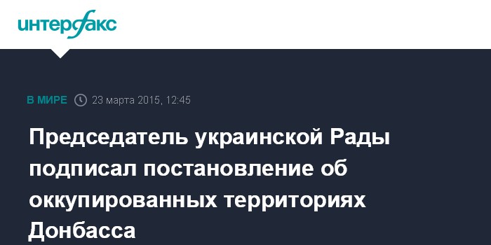 Москва. 23 марта. INTERFAX.RU - Председатель Верховной рады Украины Владимир Гройсман в понедельник подписал постановление парламента о признании отдельных территорий Донецкой и Луганской областей временно оккупированными, сообщается на сайте Рады.