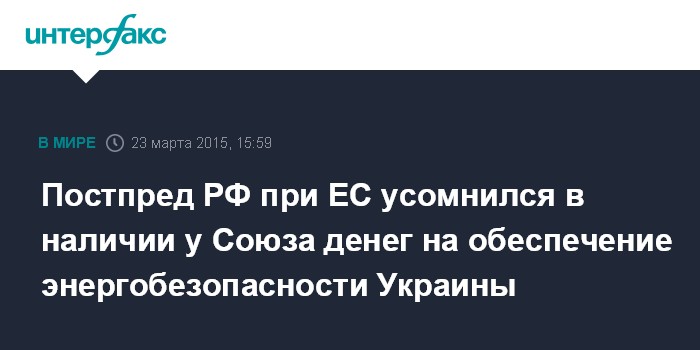 Постпред РФ при ЕС усомнился в наличии у Союза денег на обеспечение энергобезопасности Украины